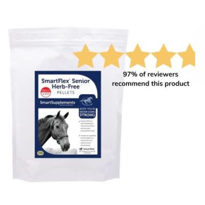 Knowing that he loves to be active and is happiest when he's in work, I’ve always been very careful to keep his supplement program tailored exactly to what his needs may be at any given time. Most recently, I’ve chosen to update his supplement program to include SmartFlex Senior Herb-Free Pellets for joint support supplement, and I'm looking forward to seeing it help keep him comfortable, strong, and happy into his 20s.