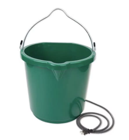 When you have the means to do so, a heated water bucket is a great solution during chilly days. Horse-friendly heated buckets have built-in thermostats, cord protection, and a hidden heater to prevent any unwanted curiosity. You can find them in 5 Gallon or 16 Gallon sizes. It's always worth mentioning the safety risk of some heated buckets, though, be sure your barn is set up to keep water in these buckets and keep an eye on any stalls or paddocks that use them.