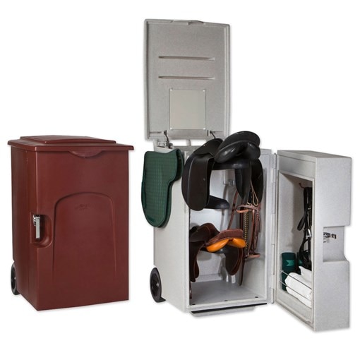 The "Saddle Trunk - Large" was created for the rare case when the depth of your English or Dressage Saddle is longer than 23". Basically, the same trunk with a deeper door that will hold Saddles up to 30" long. The lockable top lid includes a mirror. The Trunk includes the Towel Bar, the interior has two saddle racks and the same features as the Standard Saddle Trunk. The front door is deeper allowing a 30" depth to house large saddles and provides even more storage than you need. Same construction you come to expect with room for your extra large saddle.