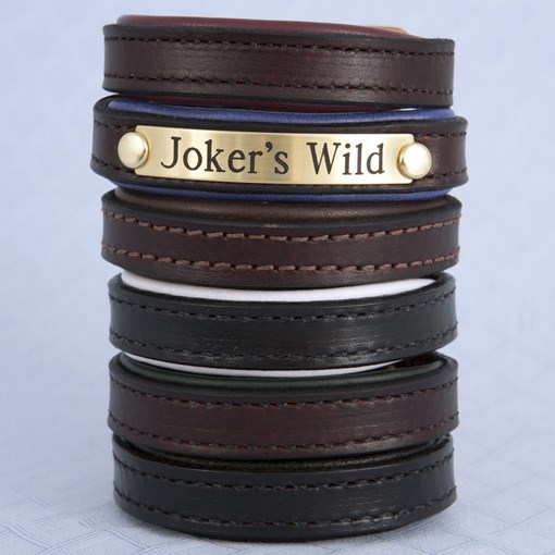 • Brown leather bracelets have solid brass fittings and black leather with silver fittings.